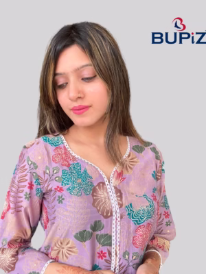 Design: The kurti features floral motifs created using foil work, giving it a shimmering and luxurious appearance.