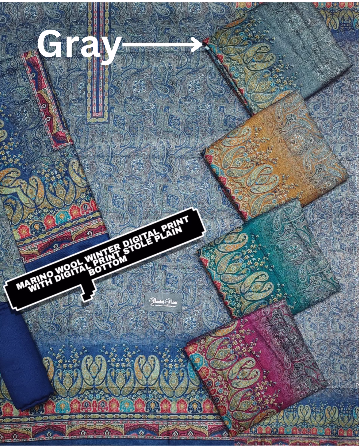 Be the first to review “Marino wool winter digital Print with print stole plane bottom”