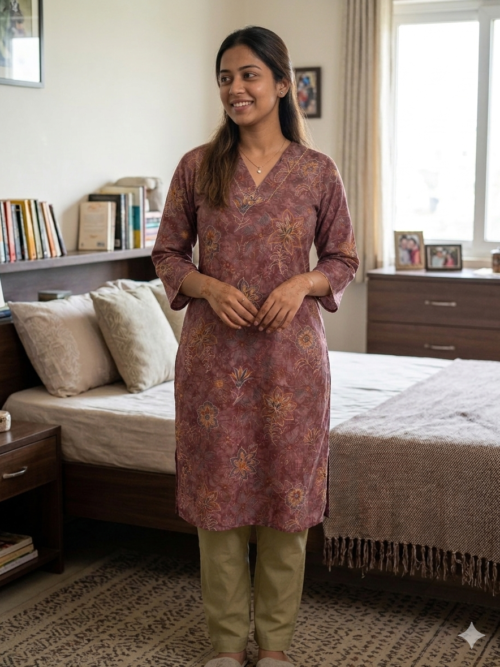 Mauve Floral Chanderi Silk Kurta